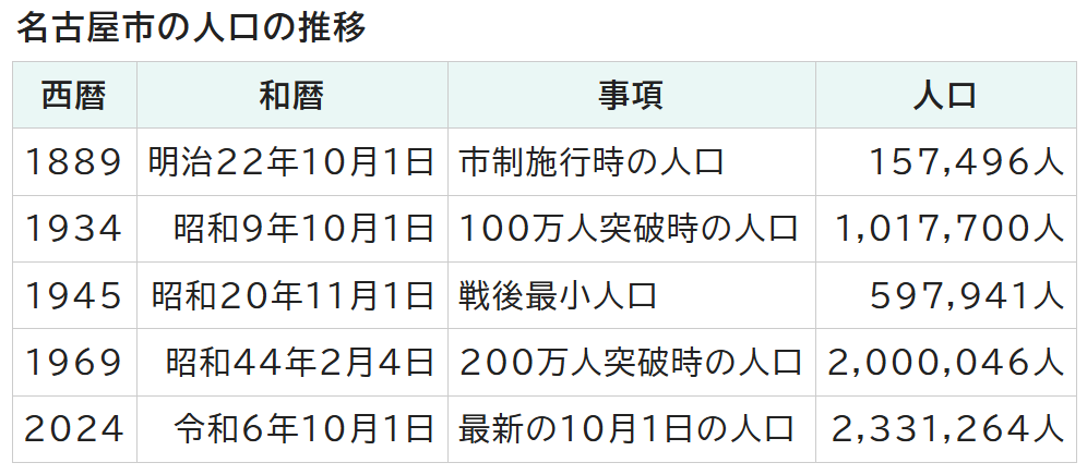 名古屋市の人口について https://www.city.nagoya.jp/shisei/toukei/1003703/1003706/1034251.html