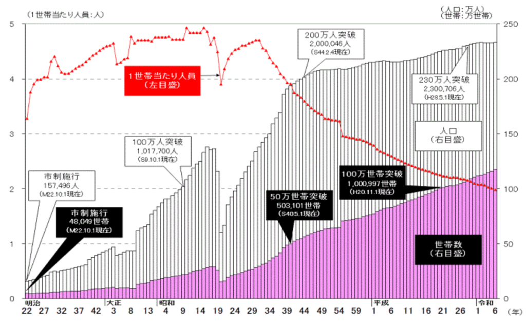 人口の推移(市制施行(明治22年)以降) https://www.city.nagoya.jp/shisei/toukei/1003703/1003706/1003711.html