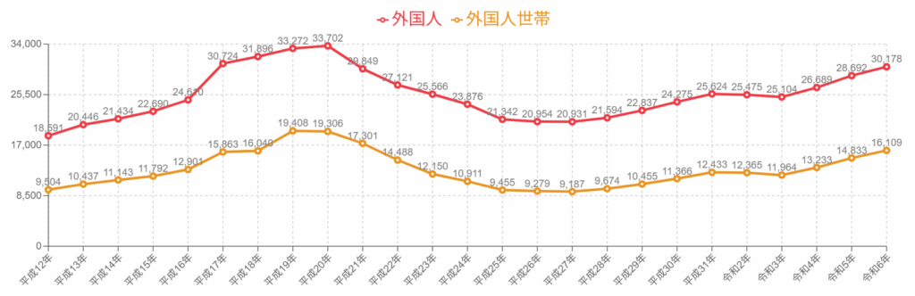 名古屋市外国人住民統計 オープンデータ 令和6年~平成26年 https://www.city.nagoya.jp/shisei/kokusai/1017227/1017235.html