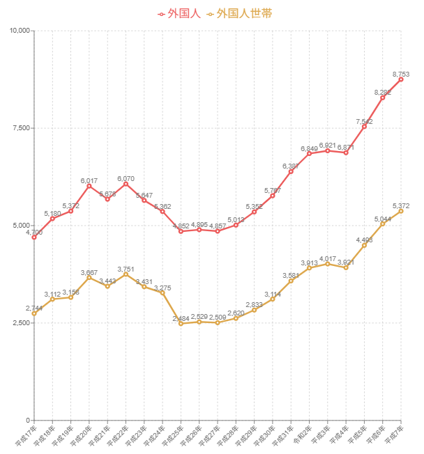 外国人 人口 8,753 人 5,372 世帯