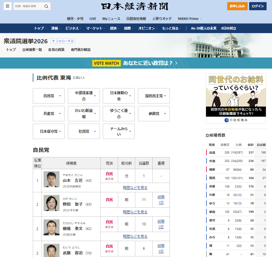 衆議院選挙2026 比例代表 東海 日本経済新聞https://www.nikkei.com/special/election/candidates/hirei/07