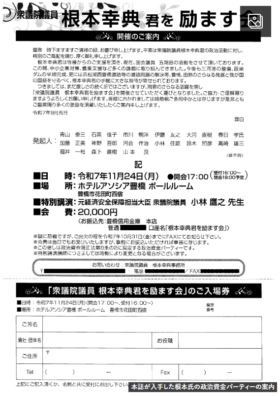 まったく反省してなかった!副大臣に抜擢されたあの「裏金議員」が大規模「政治資金パーティー」を開催予定