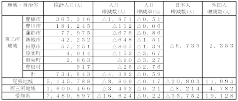 市町村別増減数で/愛知県人口動向調査