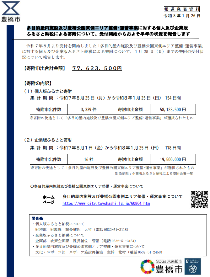 「多目的屋内施設及び豊橋公園東側エリア整備・運営事業」に寄附され