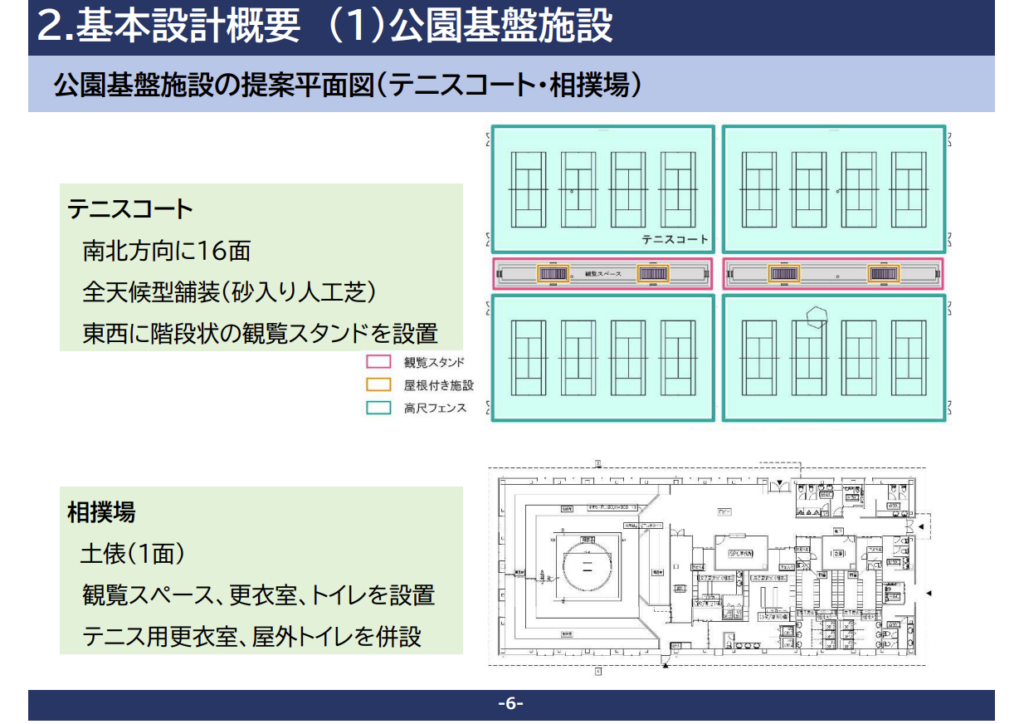 (1)公園基盤施設 (2)多目的屋内施設
