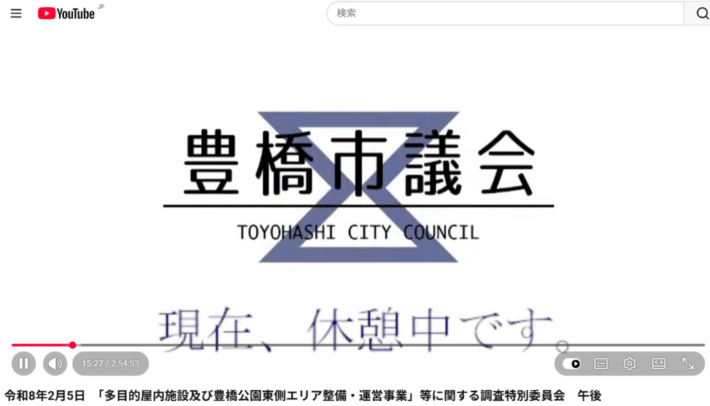 令和8年2月5日 「多目的屋内施設及び豊橋公園東側エリア整備・運営事業」等に関する調査特別委員会 午前・午後
