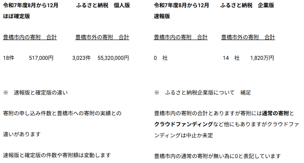 多目的屋内施設および豊橋公園東側エリア整備・運営事業」に集まった寄附額 (個人版・企業版)