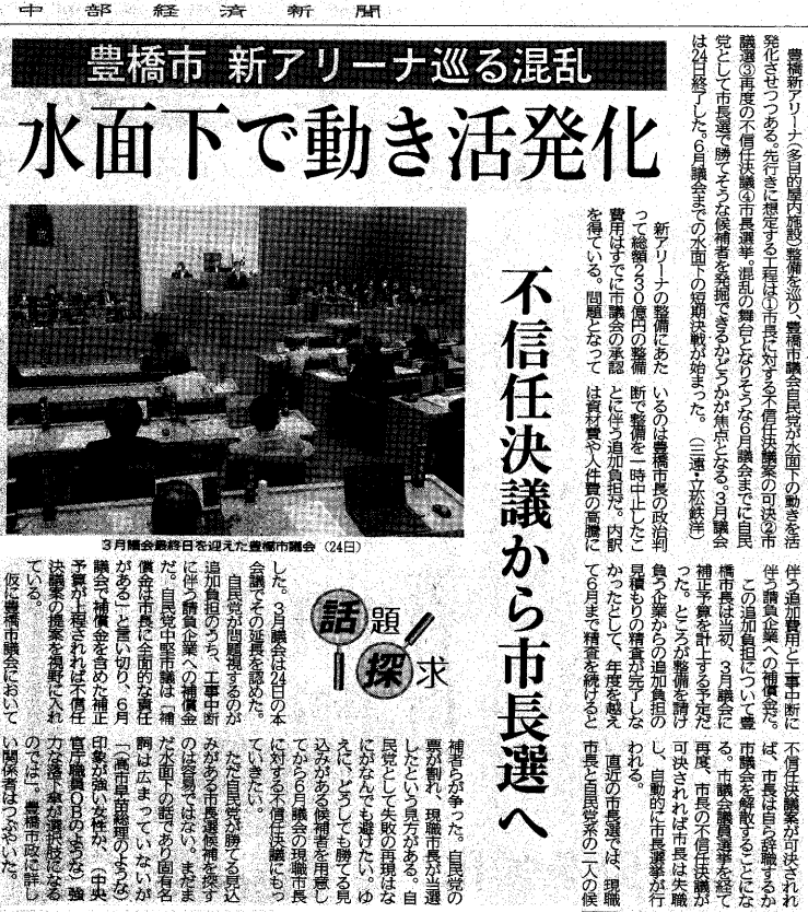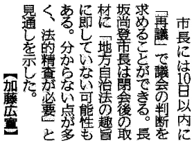 市長の政治判断が間違っていたとする不信任決議案の提出も視野に入れる