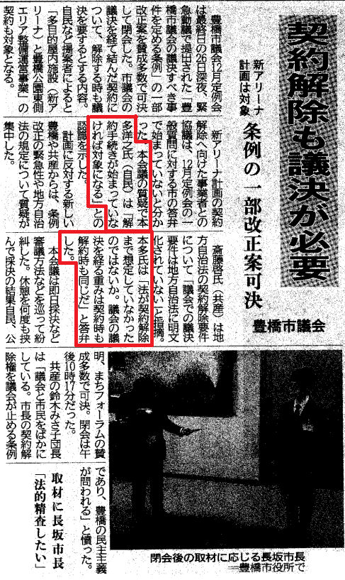 問題は豊橋市長が政治判断で多目的屋内施設の整備一時中断したことに伴う追加負担