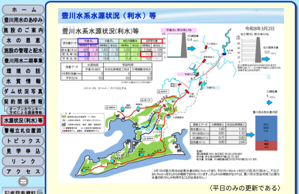 豊川水系水源状況 令和8年3月2日 (毎日更新されています)