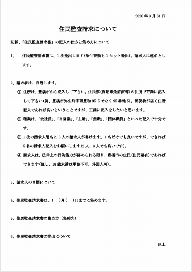豊橋市内の企業や個人の寄附の呼びかけ「市民負担の軽減」を求めたい